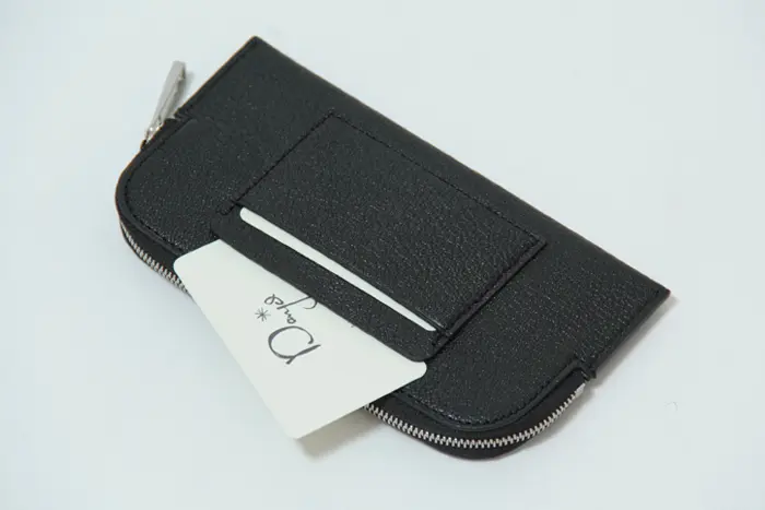 背面内側にカード収納が7ヶ所。カード入れのレザーは柔らかく、角を省くことで取り出しやすいよう工夫されています。