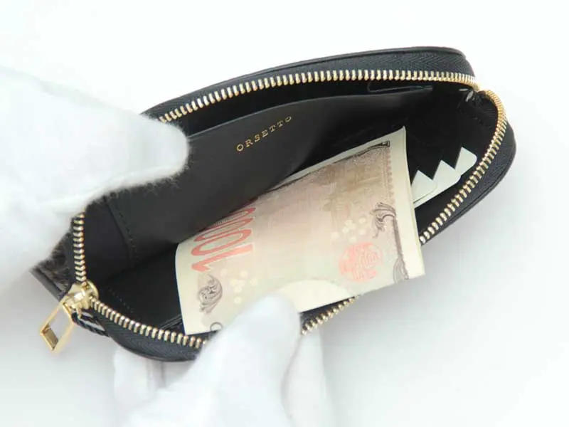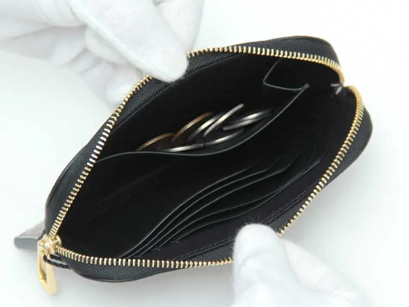 開閉は大きく開くファスナー仕様。サイドまでジップが施されているため中身が見やすく、スムーズに出し入れが可能です。お財布だけでなく、カードケースやコインケースなどとして、マルチに使える優秀アイテムです。