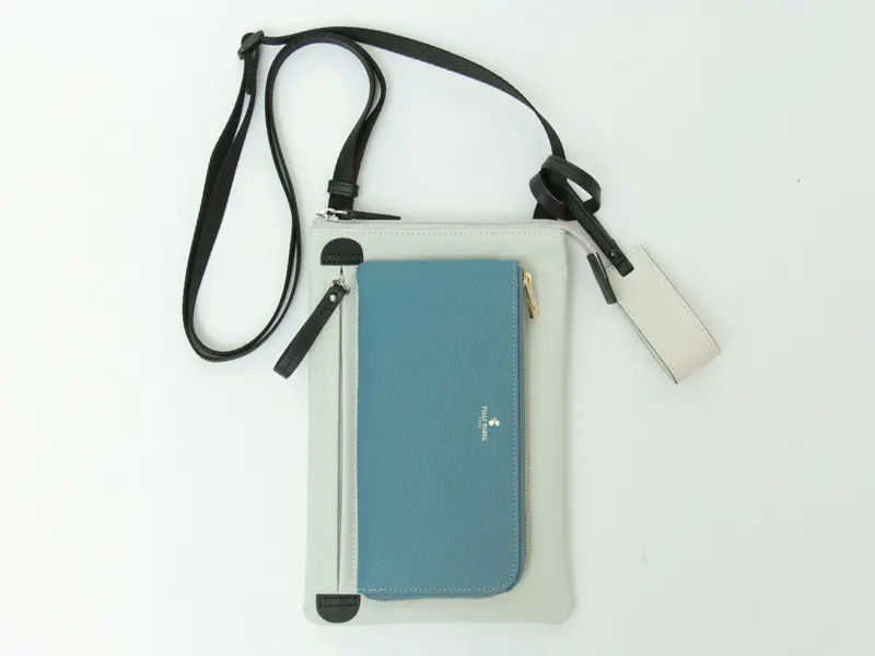開閉はファスナー仕様。コンパクトながら、長財布がすっぽり収まる大きさです。スマホやICカード、鍵など小物の整理も◎。
