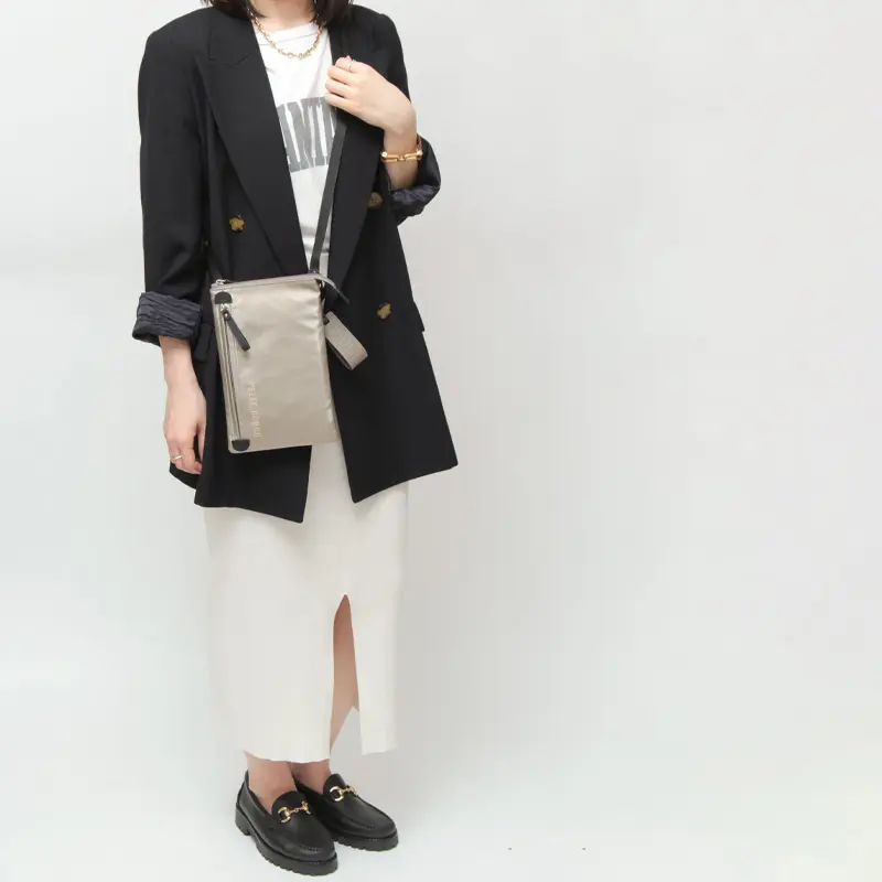 ショルダーストラップは長さ調節ができ、斜め掛けや肩掛けでお持ちいただけます。とても軽いので、持ち心地も軽やか。ちょっとそこまでから旅行やショッピング、お子様とのお出かけなど幅広いシーンで活躍してくれます。