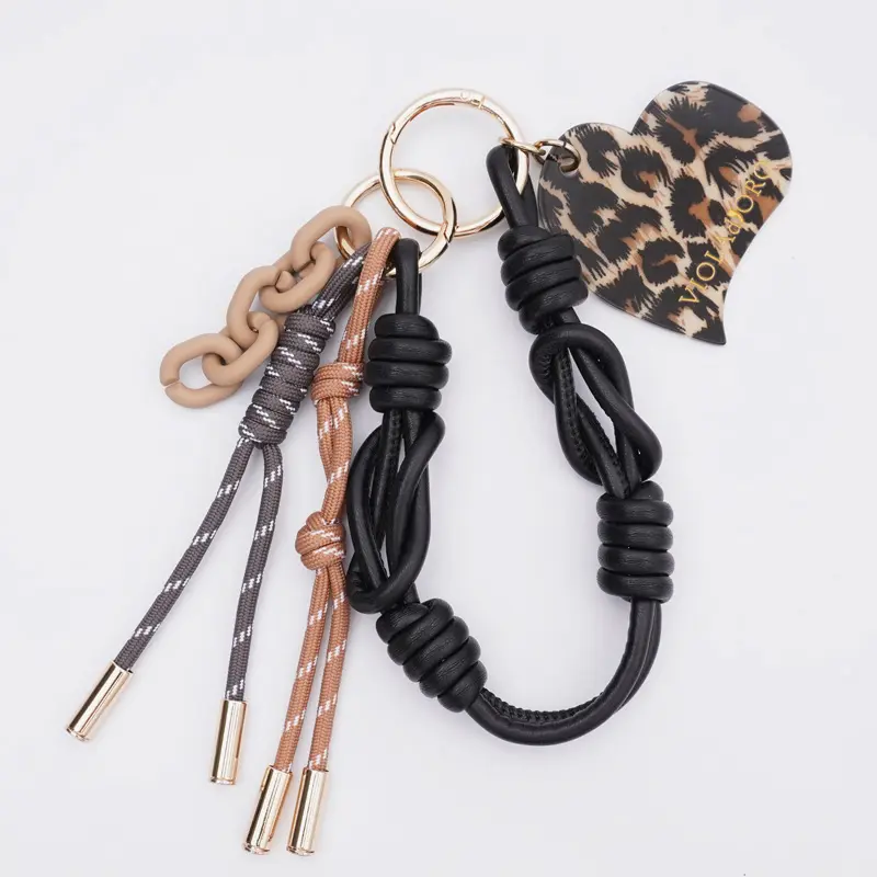 VIOLAd'ORO ヴィオラドーロ BIANCA パラコード バッグチャーム (チェーン) V-5078 レオパード/ブラック