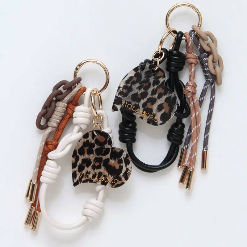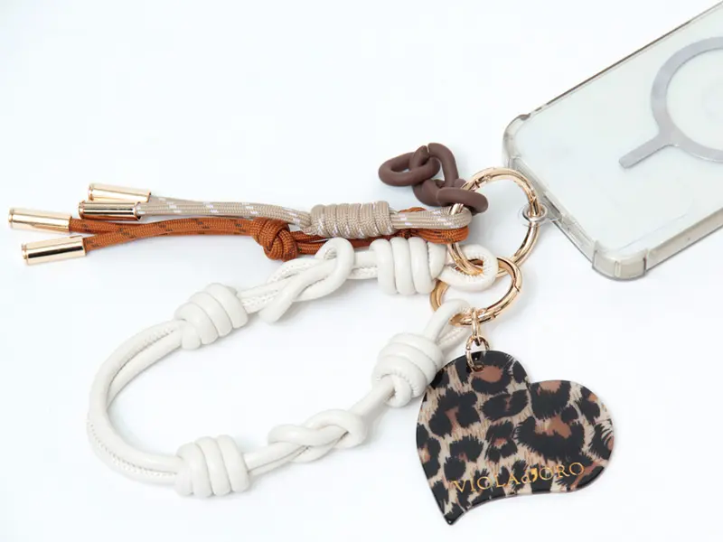 VIOLAd'ORO ヴィオラドーロ BIANCA パラコード バッグチャーム (チェーン) V-5078 レオパード/ホワイト