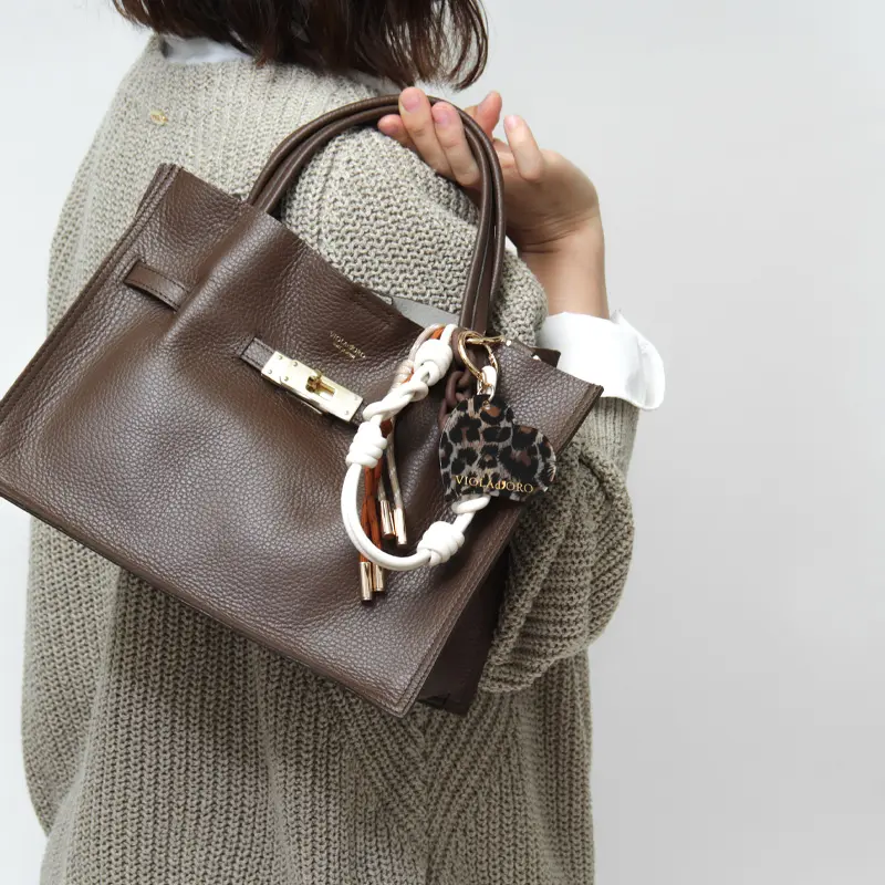 VIOLAd'ORO ヴィオラドーロ BIANCA パラコード バッグチャーム (チェーン) V-5078 ブリンドル/カプチーノ