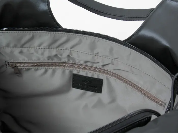 背面内側には長財布が収納可能なファスナーポケットが備わっています。