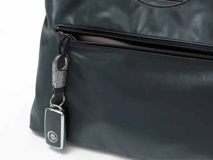 背面のファスナーポケットは内ループ付き。カギやICカードを繋げたら行方不明も防げ、サッと取り出せ便利です。