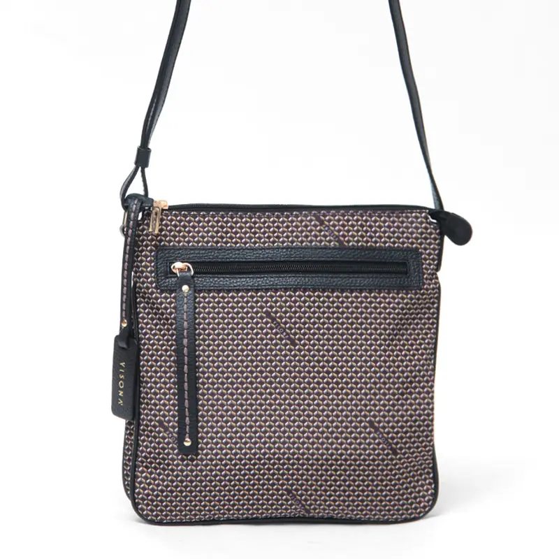 ブランドアイコンのVISONAステッチを表現したオリジナルプリント。レザーと同色の生地に、繊細な陰影と立体感が上品な華やかさを演出し、スタイリングのアクセントとしても映える柄です。