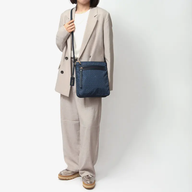 イタリア製ならではの丁寧な仕立てが魅力のヴィソナ/VISONAのショルダーバッグ。VISONAのオリジナルモノグラムプリントとカーフレザーのコンビが大人の装いにさりげないアクセントを添えます。長財布などのお出かけの際の必需品に加え、A5サイズのノートや500mlペットボトル、折りたたみ傘などもすっきり収まる収納力。調節可能なショルダーは斜め掛けや肩掛けも可能で、日常使いはもちろん、お出掛けにも活躍するバッグです。