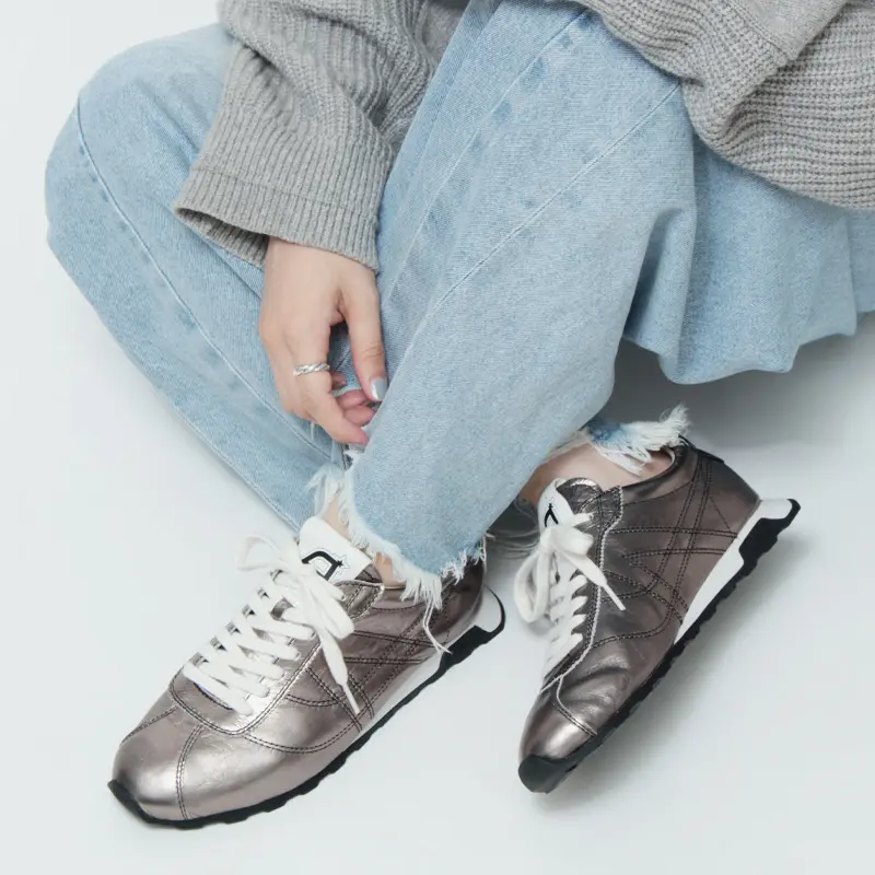 柔らかく足にしっくりと馴染むオールレザーのアッパーに、さりげないステッチワークを施すことで上品な印象に。スニーカーならではのカジュアルな雰囲気を程よく抑え、洗練されたスタイルを演出します。