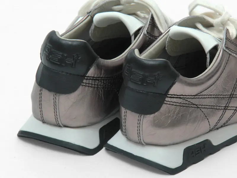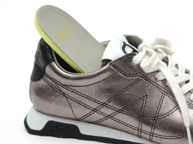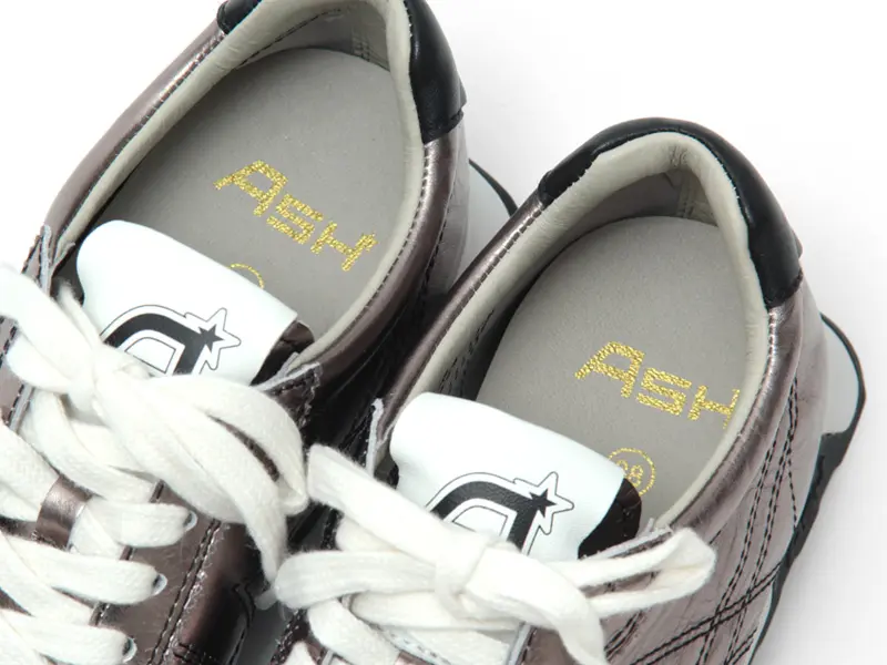 サイドに配された“A”のモチーフが、ASHらしい存在感を放ち、足元にさりげないアクセントを添えます。ソールの厚みは約2.0cm。プラットフォームが約1.5cmあるのでフラットに仕上げられています。反り上がったつま先が蹴り出しをサポートし、足運びもスムーズ。さらに優れたソールのかえりも良い軽量な履き心地を叶えます。