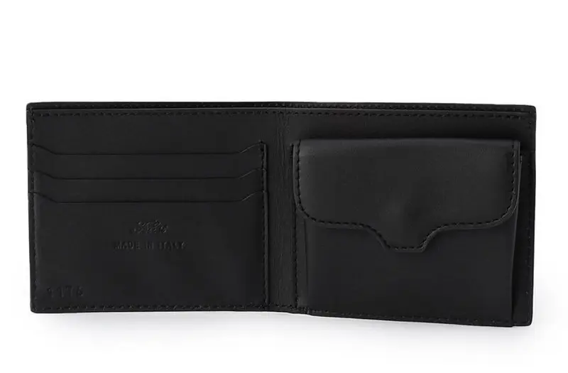 シンプルな使い心地が魅力の二つ折り財布。手のひらに心地よく収まるコンパクトなサイズ感と、洗練されたシックなデザインにより、日常使いにおける実用性の高さが際立ちます。紙幣・小銭・カードをひとつにまとめられるオールインワン仕様で、見た目の美しさと機能性を兼ね備えた、大人の男性にふさわしい逸品です。 素材には、Felisiを代表するイタリア製シュリンクレザーを採用。優雅なシボ感と柔らかな手触りが、レザーらしい上質な表情を引き立て、静かにラグジュアリーさを漂わせます。レザーライニングや丁寧なステッチワーク、そして美しいコバ処理など、細部にまで息づくFelisiならではのクラフトマンシップも魅力のひとつです。