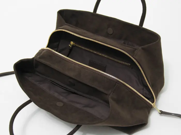 日本の文化から生まれ、着物姿との調和が取れる定番型である「利休バッグ」。"MARY AL TERNA(メアリオルターナ)"の「RIKYU」シリーズは、内部が3つのルームに仕切られており、仕分け収納がしやすく、中身の確認も簡単に行えます。水分に強く色落ちがしにくいウルトラスエード素材を採用し、カジュアルなスタイルはもちろん、ビジネスシーンなど幅広い場面で活躍します。