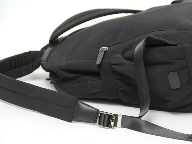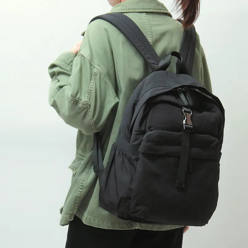 表生地には撥水加工を施したポリエステルなので天候に左右されることなくお持ちいただけます。くったり柔らかく軽い素材で使い心地も抜群です。汚れが付きにくく落としやすいので、お手入れも簡単です。