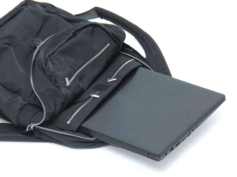 大容量のメイン収納は横まで大きく開くファスナー仕様で荷物の出し入れがスムーズ。A4ファイルが悠々と収まる広々とした空間が広がり、背面にはデバイスを守るクッション性のあるノートパソコン用スリーブを搭載。視認性を高める鮮やかなカラーの裏地を採用したファスナーポケットも3つ備えています。