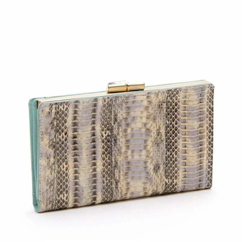 ADMJ エーディーエムジェイ スネークレザー クリスタル付 がま口 長財布 DRAGO BLU