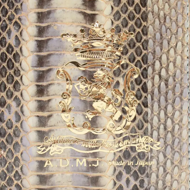 ADMJ エーディーエムジェイ スネークレザー クリスタル付 がま口 長財布 LILA GOLD SHINE
