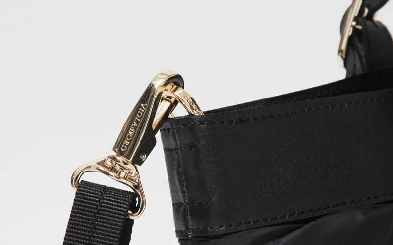 キルティング加工の撥水ナイロンを使用し、汚れや水を弾いて雨の日も安心。汚れてもサッと拭き取れる扱いやすさが魅力です。ふんわり柔らかなキルティングが程よいボリューム感で、カジュアルすぎず上品さを漂わせるデザインです。また"VIOLAd'ORO"のVIOLA=紫、ORO=金を意味することから、ブランドロゴが刻まれたゴールドの金具が使われています。