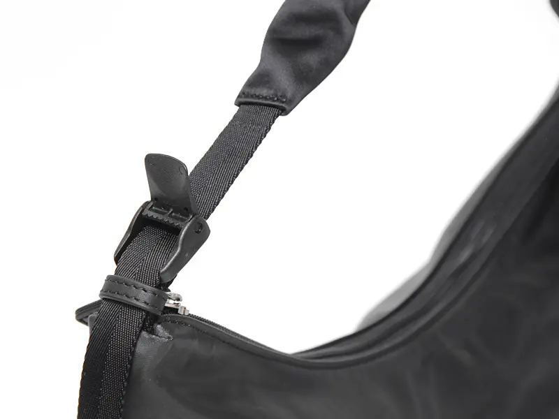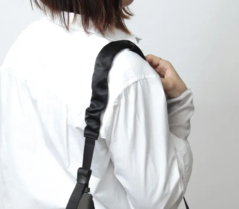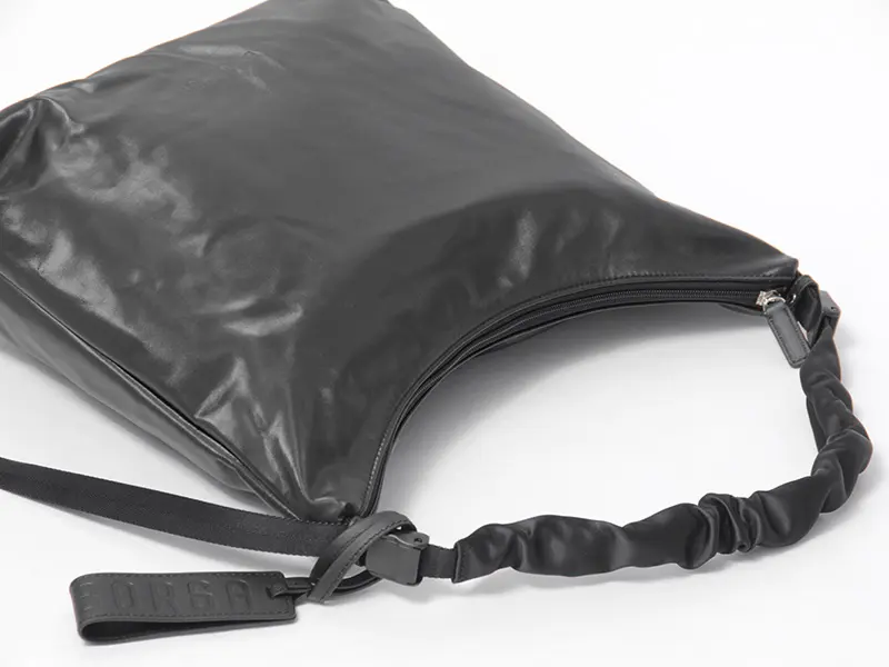 シャーリングデザインがお洒落なハンドルは、スライダーで長さを調節できます。滑らかな素材によりスムーズに調整でき、厚手の上着の季節でもゆったり肩掛けできます。