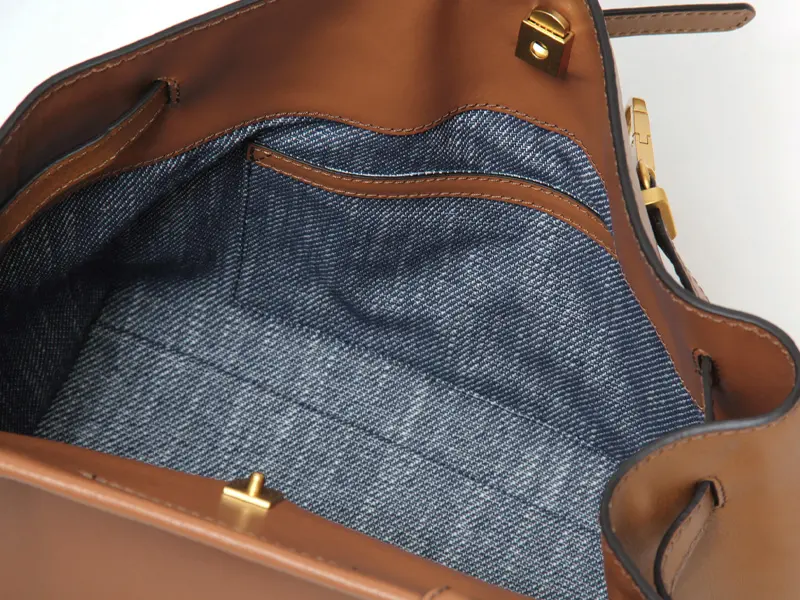 長財布やスマホといったデイリーアイテムに加え、A5ノートや500mlボトルもすっきり収まる頼れる収納力。リップやアクセサリーを忍ばせられる内ポケットも備え、細部まで気の利いたつくりです。内装にはデニム調ファブリックを採用し、カジュアルで洗練された雰囲気です。