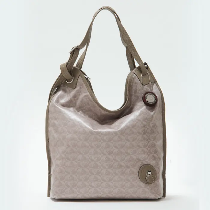 クラフトマンマークのモノグラムをジャガード織りで表現。主張しすぎない、さりげなさが大人ぽくて上品な印象です。ウレタンコーティング加工を施しているので、ソフトながらも防水性があり、雨の日も安心。汚れてもさっと拭けてお手入れも簡単です。オシャレで機能性に富んだ素材です。