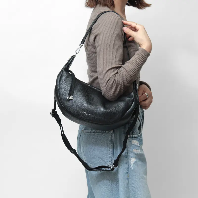クロワッサンのようなカーヴィなフォルムが印象的な「ASHA(アイシャ)」は、GIANNI CHIARINIならではの洗練が光るショルダーバッグ。シンプルでありながらディテールまで丁寧に仕立てられたオールレザー仕様で、やわらかな質感が身体にしなやかに寄り添います。ころんとした丸みのあるフォルムがスタイルにモダンなニュアンスを添え、デイリーから特別なシーンまで活躍する上質なバッグです。