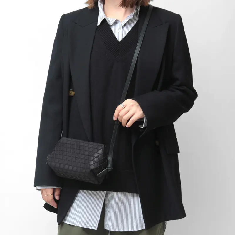 LAQUOH ラクーオ Kagome Emboss ボンディング ミニ ショルダーバッグ ブラック