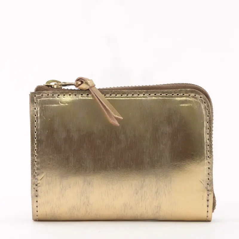 SARANAM サラナン Foil  メタリック カウレザー 二つ折り 逆L字ジップ財布 ゴールド