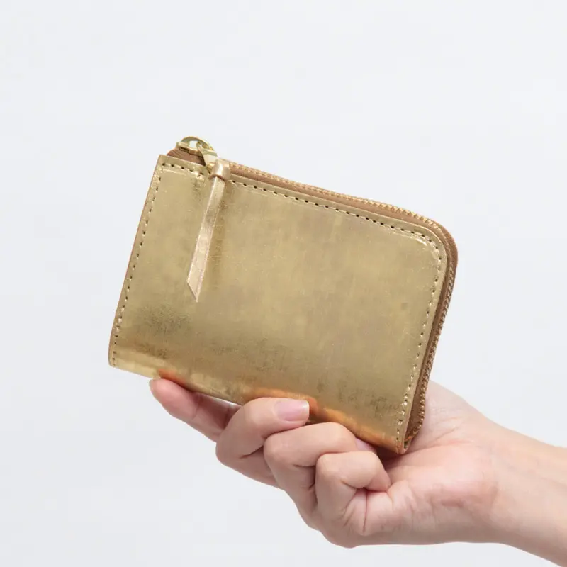 SARANAM サラナン Foil  メタリック カウレザー 二つ折り 逆L字ジップ財布