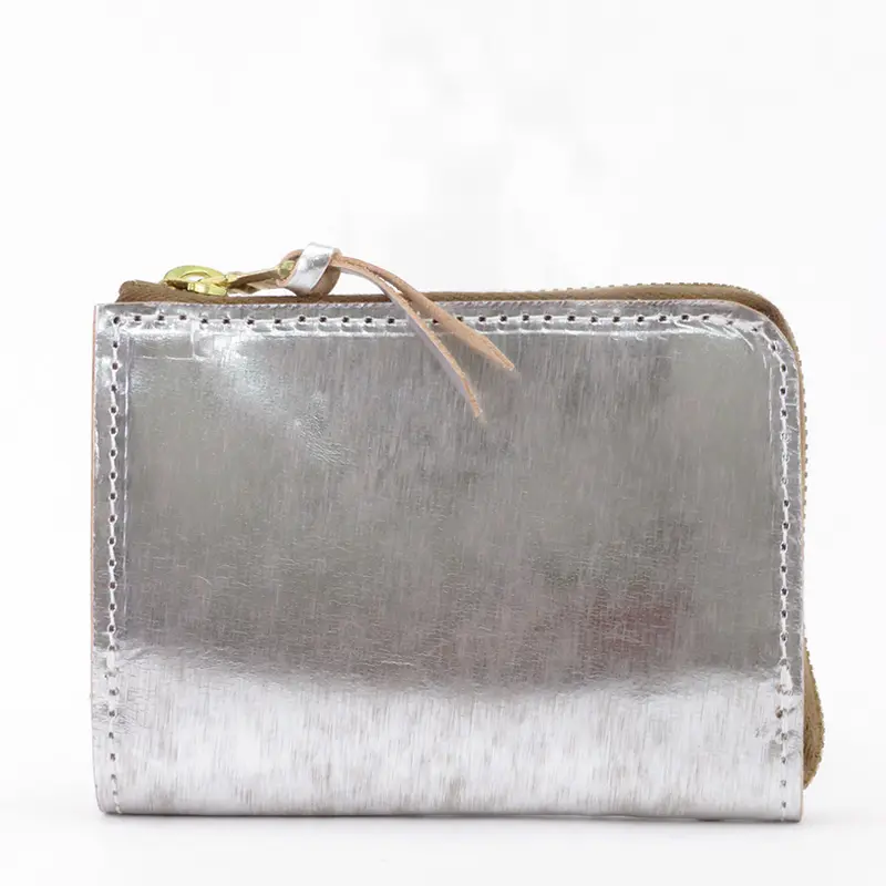 SARANAM サラナン Foil  メタリック カウレザー 二つ折り 逆L字ジップ財布 シルバー