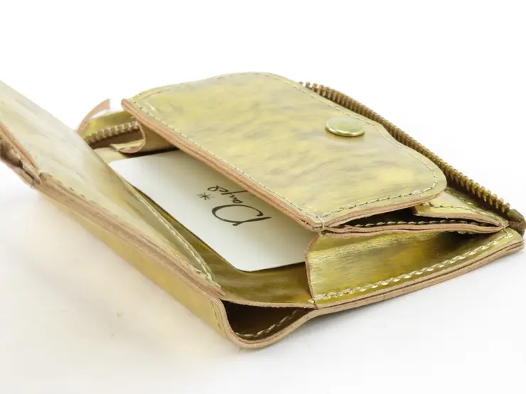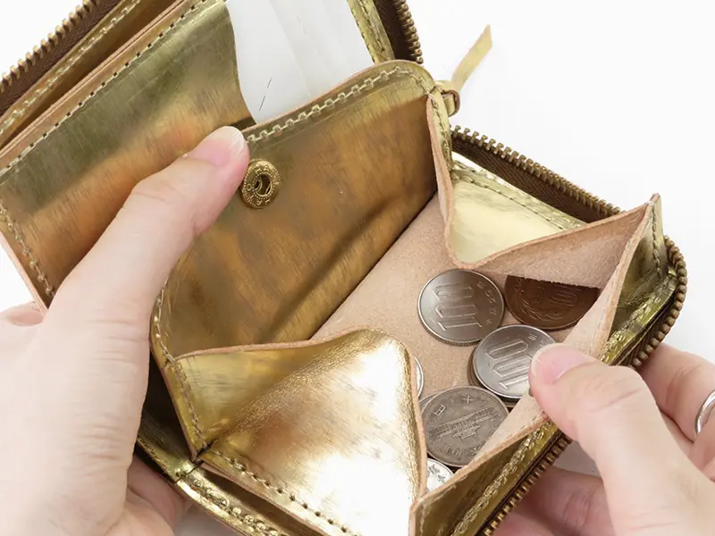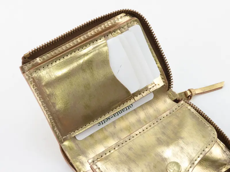華やかな輝きをまとった"saranam サラナン"「Foil(フォイル)」シリーズの二つ折り財布。メタリックな箔カラーが特徴の牛革は、光の角度によって表情を変え、持つ人にエレガントな印象を与えます。長財布とミニサイフの中間の程よいサイズ感で持ち歩きやすく、日常使いに必要な機能をしっかり搭載。小さいバッグにも入れやすいサイズに仕上げたミディアムサイフです。
