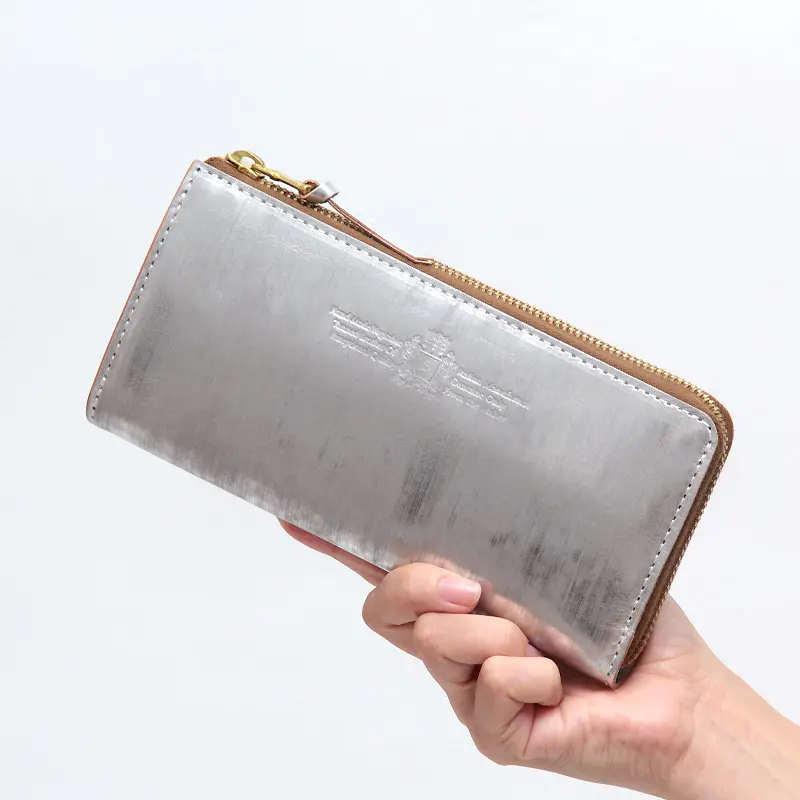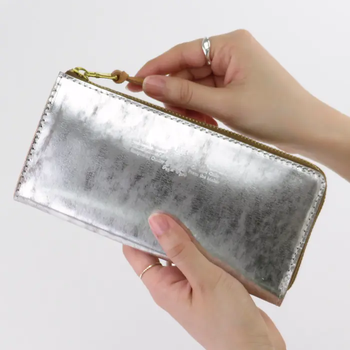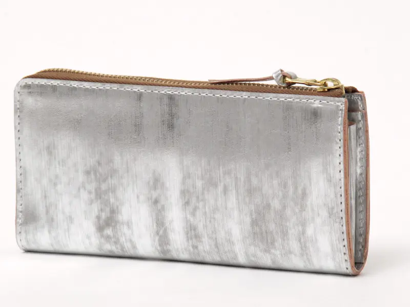 SARANAM サラナン Foil  メタリック カウレザー L字ダブルマチサイフ シルバー
