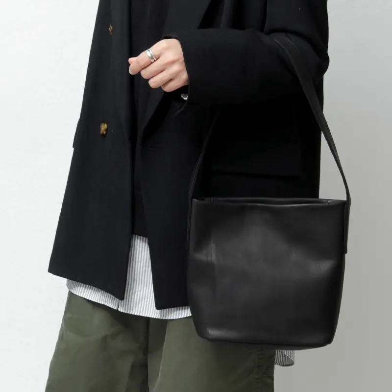 リネンや革など素材と国内製法にこだわったバッグブランド「MORMYRUS」。 マットな艶めきが美しい上質な牛革を使用したトートバッグ。長財布やA5サイズの手帳も収まるコンパクトなサイズ感で、日常に寄り添いながらも洗練された印象を演出します。オールブラックのシンプルなデザインは、年齢や流行を問わず、タイムレスにお楽しみいただける逸品です。