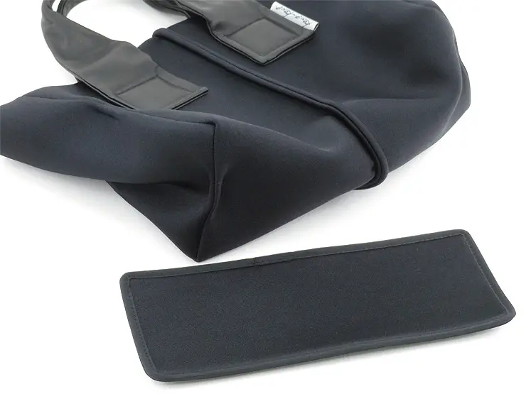 底板が付いているので、荷物を入れても型くずれしにくく、いつでもきれいなシルエットでお持ちいただけます。また鞄を置いたときも安定感があります。