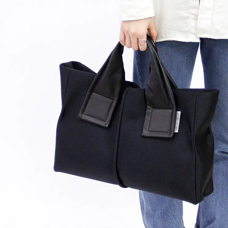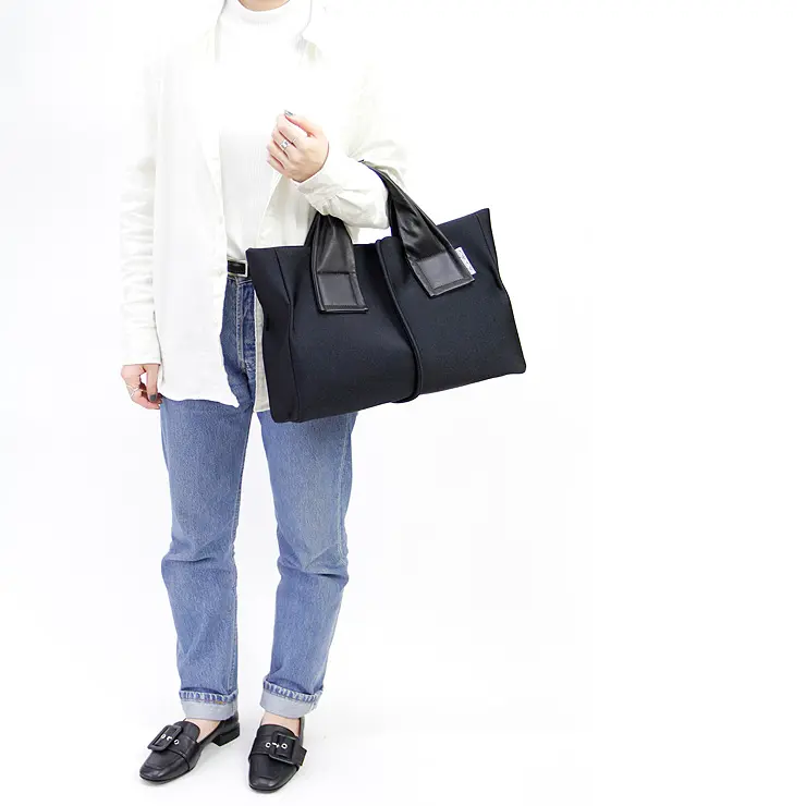軽くて丈夫なkawa-kawaオリジナル素材「wet」を使用したトートバッグ。幅広のレザーハンドルは、デザインのアクセントとなり、シンプルながらも洗練された印象に。A4ファイルもきれいに収まり、普段使いからビジネスシーンまで幅広くマッチし、急な雨にも安心な耐水性で、毎日使いたくなる万能バッグです。