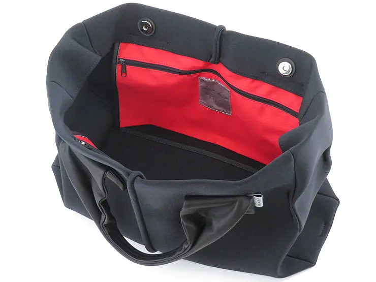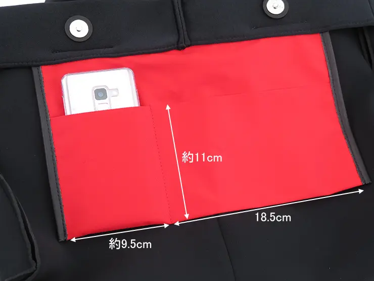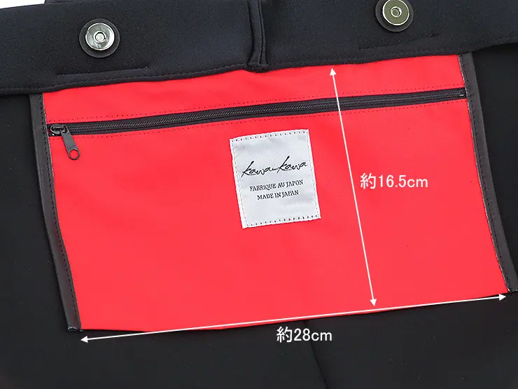 開閉はマグネット仕様。A4サイズはもちろん、ペットボトルや折りたたみ傘もきれいに収納できます。また、様々な内ポケットがあるので、スマホや鍵、イヤホンなど小物を整理して収納できます。