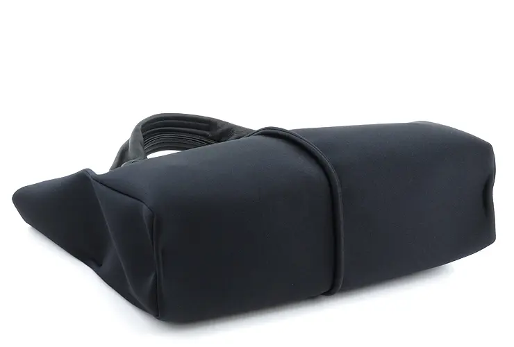 本体は、kawa-kawaオリジナル素材「wet」を使用した、軽くて丈夫なトートバッグ。マリンスポーツ用素材をベースに、摩擦や水・汗に強く、さっと拭くだけで雨ジミも気にならない優秀素材です。要所のステッチはデザイン性と型崩れ防止を兼ねています。