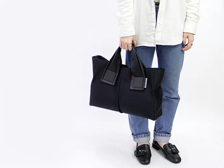手元にアクセントを添える、大胆な太めハンドルが目を引くトートバッグ。幅広ハンドルは、軽量でとてもやわらかく驚くほどの軽さを実現した、カワカワオリジナルの牛革を使用。中央のシームは全体のデザインを引き締めると同時に、荷物の重みによる素材の伸びを軽減します。洗練されたブラックボディはスタイルを選ばずどんなコーデにも自然に馴染みます。