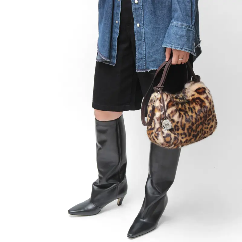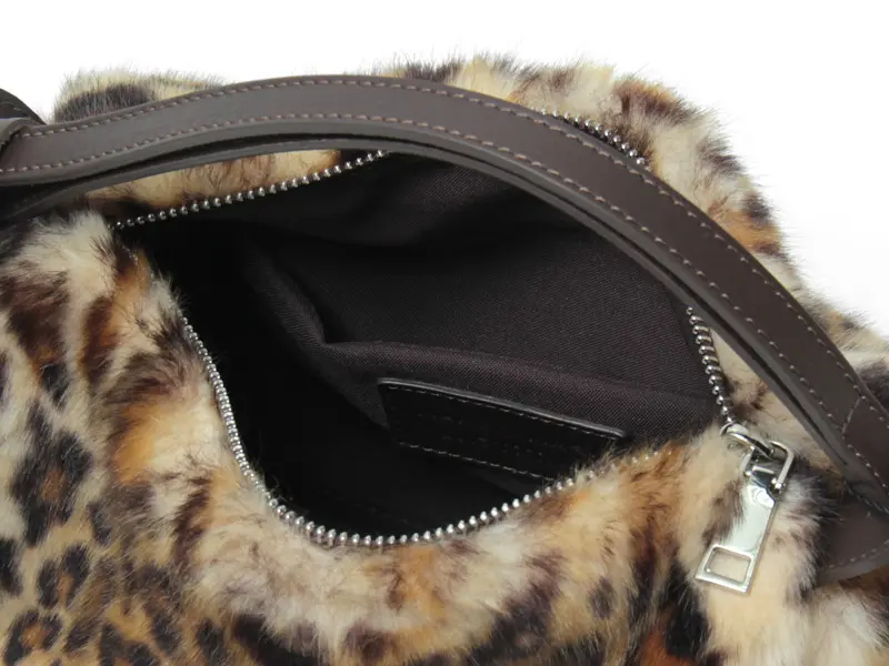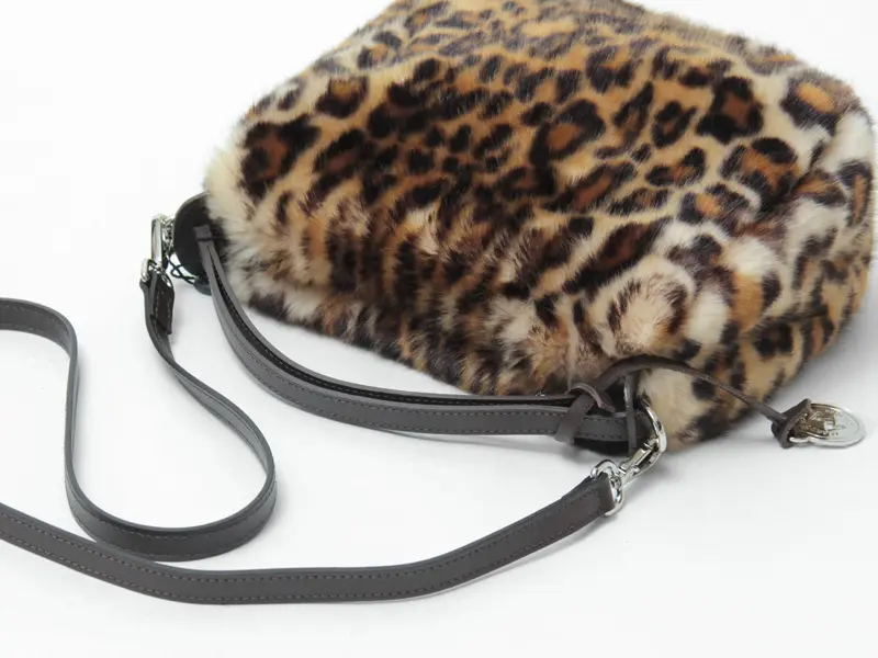 柔らかな手触りのエコファーを使用。派手すぎない落ち着いた色味のレオパード柄で上品でありながら存在感を放つ、シーズンムード漂うイタリア製バッグです。
