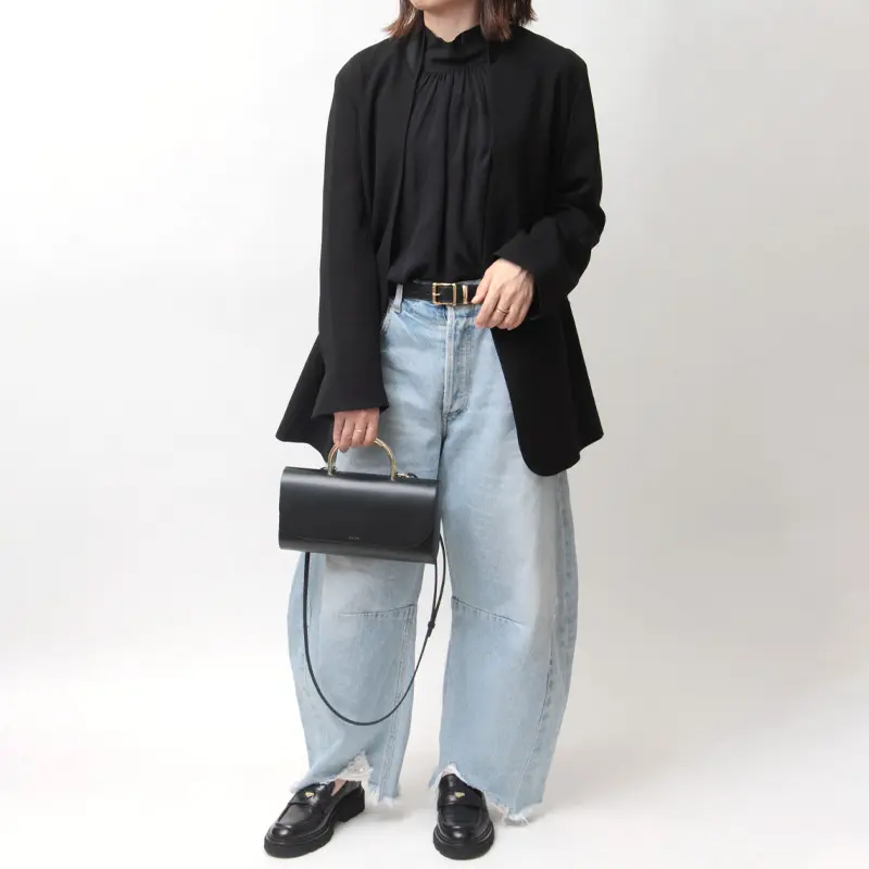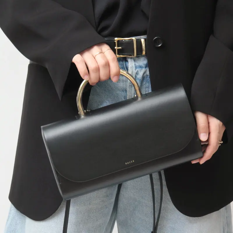シンプルかつ印象的なディテール。ハンドバッグとしてはもちろん、クロスボディで持つことも可能。