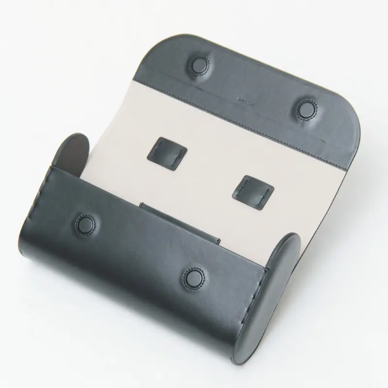 しなやかで上質なレザーを使用し、フロントにはゴールドの箔押しロゴをあしらった上品なデザイン。きめ細かいグレインカーフレザーは手に馴染む柔らかさとマットな質感を併せ持ち、洗練された印象を際立たせます。