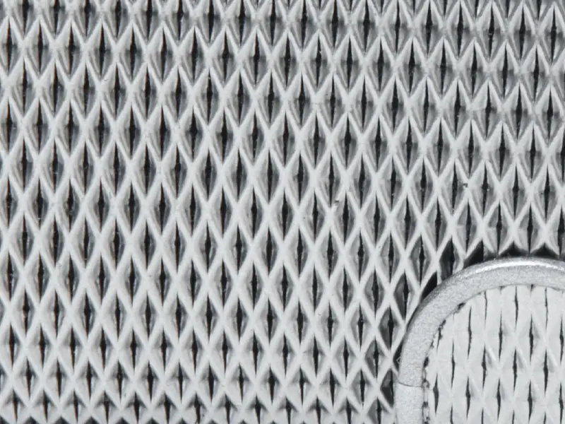 クロム鞣しの上質な牛革にメタリック塗装をし、ダイヤ形の深い型押しを施しています。