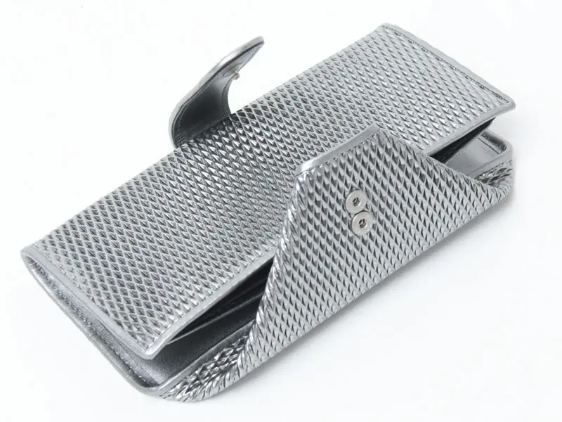 CATENA(カテーナ)は、ラテン語で“チェーン・鎖”を意味します。西洋の騎士が纏った鎖かたびらや鎧をイメージした、重厚感のあるデザインです。 クロム鞣しの上質な牛革にメタリック塗装をし、ダイヤ形の深い型押しを施しています。