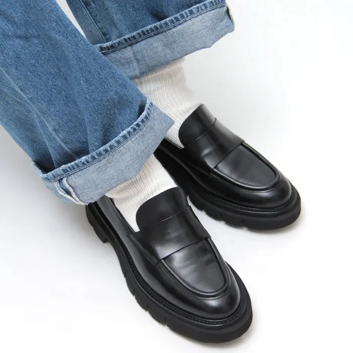職人技とファッションを兼ね備えた“LUCA GROSSI ルカ グロッシ”の上品なローファー。ベーシックなデザインで、マニッシュなコーディネートや大人のカジュアルスタイルに幅広く対応します。ボリューム感のある厚底ソールが、着こなしにアクセントを加え、安定感のある履き心地で長時間の着用でも疲れにくいのが魅力です。デイリーユースからお出かけまで、マルチに活躍する一足です。