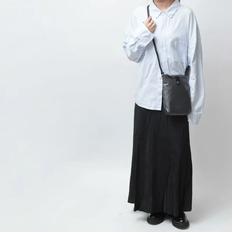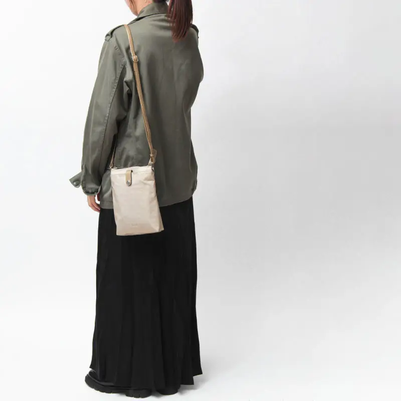 パール加工を施した牛革のショルダーストラップ。長さ調節が可能なので、長めで上品に、短めでカジュアルに、コーディネートや出かける場所に合わせてお楽しみいただけます。スマートなシルエットなので、アウターの下で持ってもかさばらずお持ちいただけます。ポケットがない日のポケット代わりにも◎ ハンズフリーで軽快にお出掛けできます。メインバッグとの2個持ちもおすすめです。