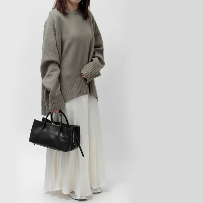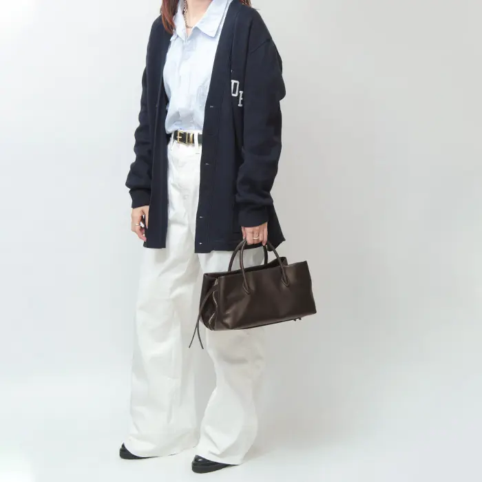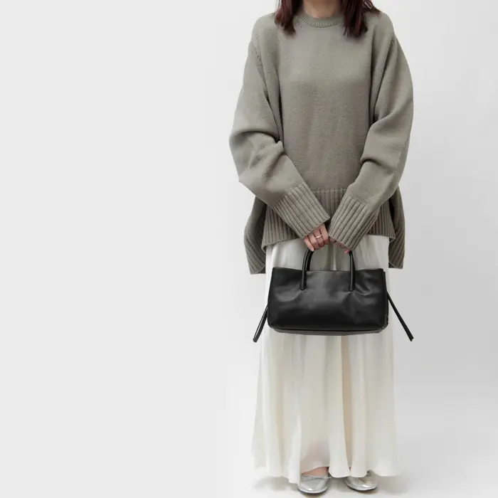 レディライクな印象の細めなトップハンドルは、すこし長めの長さで、腕に掛けるスタイルも可能です。