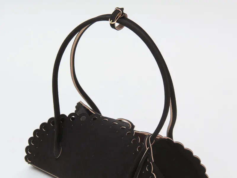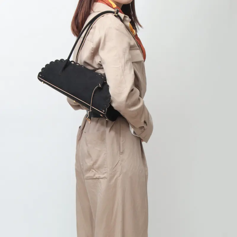 MARY AL TERNA(メアリオルターナ)のENSOUシリーズ。日本のミニマリズムから生まれた円の連鎖が印象的なデザインです。軽くて水に強いウルトラスエードを使用し、裏面は水拭き可能な人工皮革でお手入れも簡単。美しいカッティングと横長フォルムで、必需品が収まるサイズ感。シーズンレスに活躍する日本製バッグです。