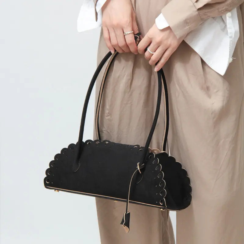 抜群の軽さに加え、水分に強く色落ちしにくいシーズンレスなウルトラスエードを使用。精緻なカッティングが素材の美しさを引き立て、ラインの美しい横長フォルムで洗練されたスタイルを演出します。耐久性と使いやすさも兼ね備え、毎日のお出かけやデイリー使いにぴったりです。