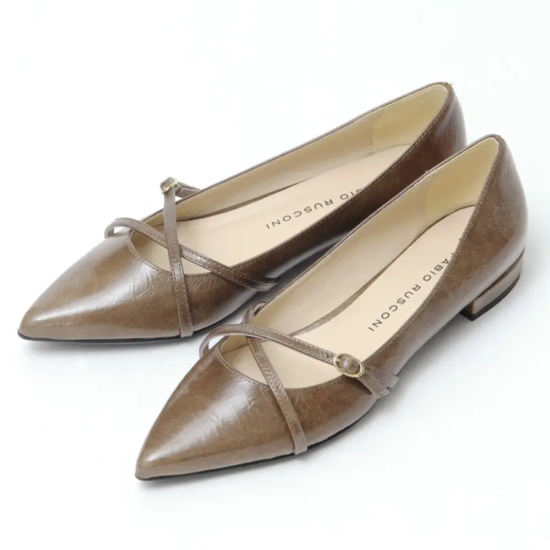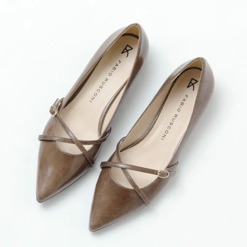 FABIO RUSCONI ファビオルスコーニ ポインテッドトゥ フラット パンプス TAUPE