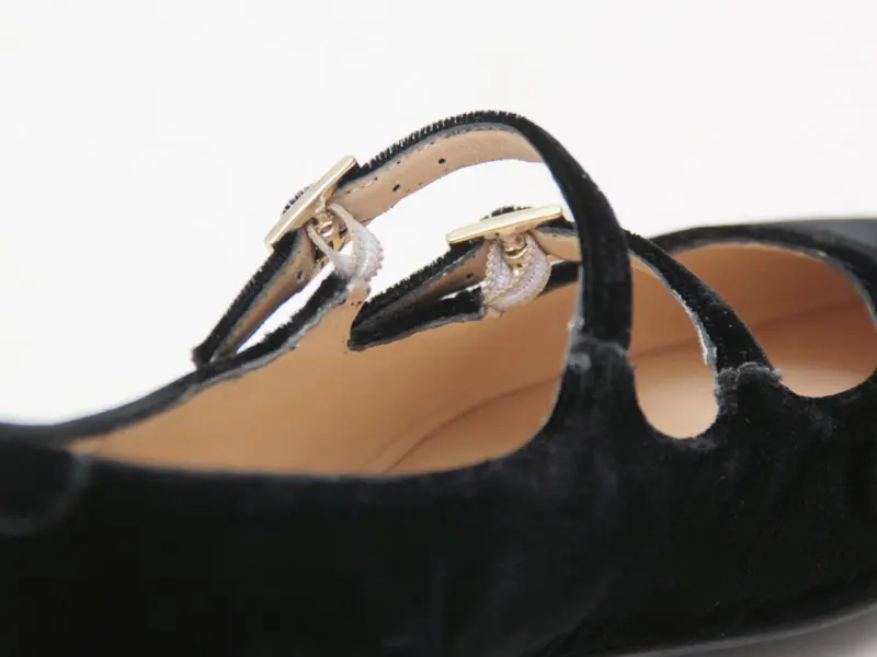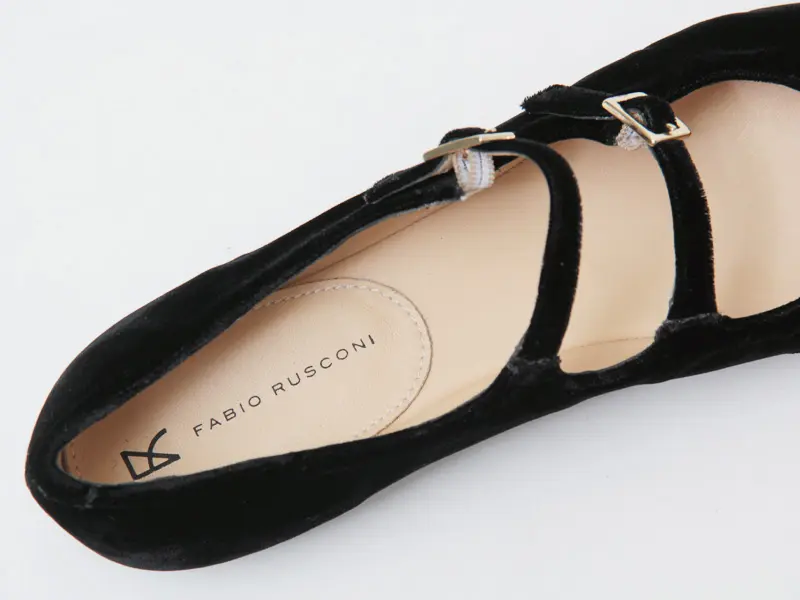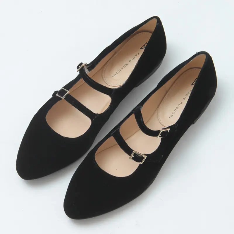 FABIO RUSCONI ファビオルスコーニ ダブルベルト フラット パンプス VELVET BLACK