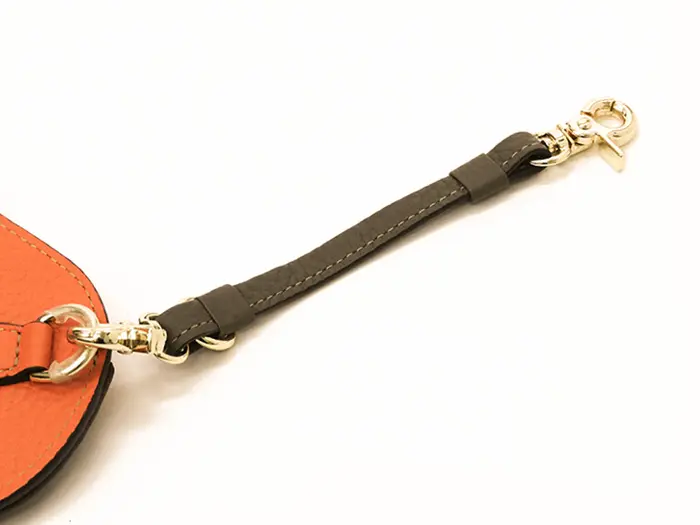 ストラップは取り外すことができます。金具はゴールドでエレガントな印象です。