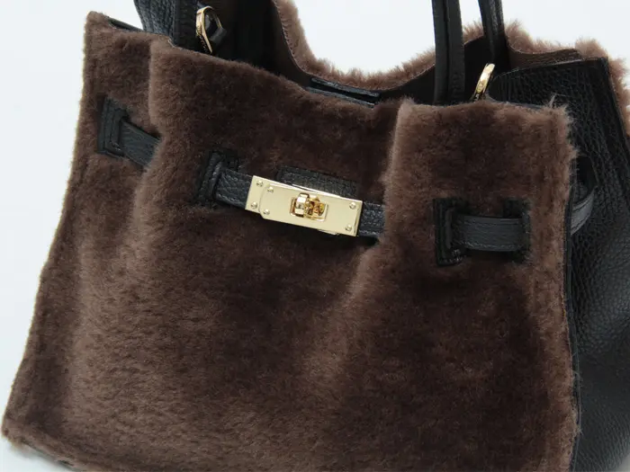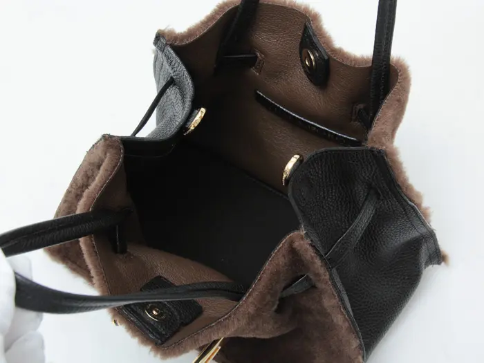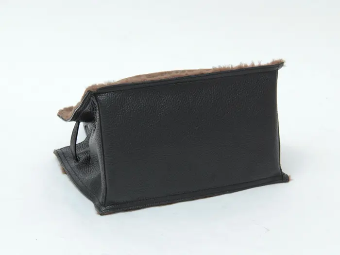 開閉はマグネット仕様。開け閉めしやすく、荷物がスムーズに出し入れできます。 マチ幅が広く、長財布やポーチ、手帳などの必需品が収まる見た目以上の収納力です。大きすぎず小さすぎないサイズ感は使い勝手が良く、バランスよくお持ちいただけます。ファー部分の内側はレザーを貼っているので高級感のある仕上がりです。
